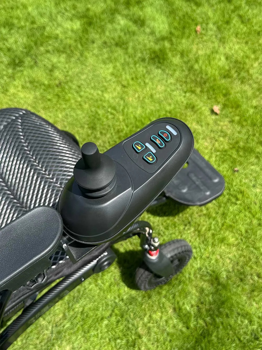 - Controlador Inteligente: El módulo de controlador avanzado es el corazón de esta silla de ruedas, ofreciendo un control sin esfuerzo. Permite encender/apagar fácilmente, ajustar la velocidad y monitorear la batería en tiempo real con una pantalla clara. Cuenta con una bocina para seguridad, operación intercambiable entre izquierda y derecha, y un puerto de carga dedicado. Resistencia al agua IP66 para mayor durabilidad en cualquier clima.